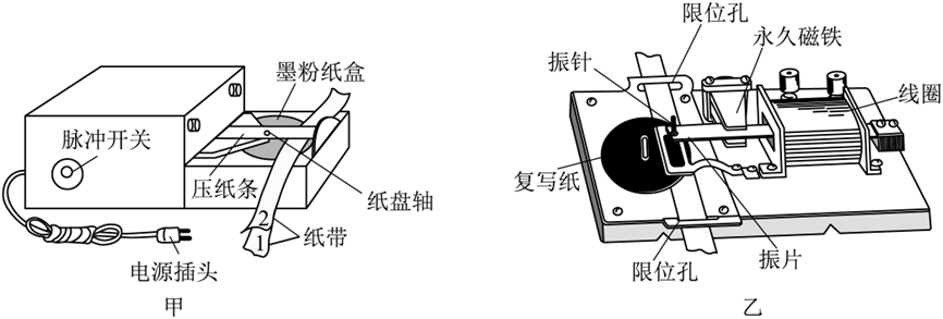 (1)打点计时器是一种使用 (“交流”或“直流”)电源的 (“计数”、“计点”、“计时”或“计长度”)仪器,在中学实验室里常用的有电磁打点计时器和电火花计时器;如图甲为 计时器,它的工作电压是 ;如图乙为 计时器,它的工作电压是 ;