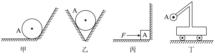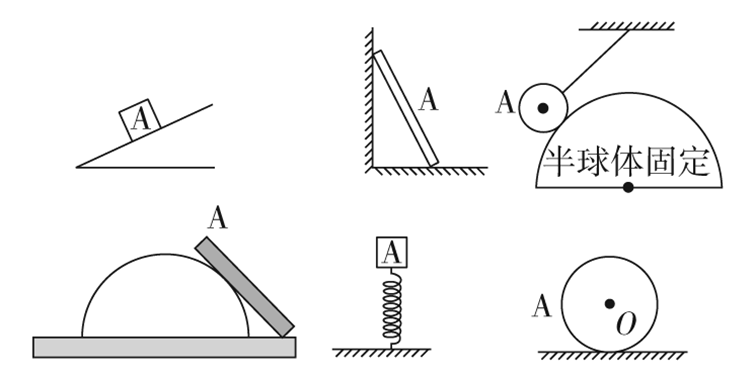 (7)如图所示,各接触面光滑且物体A静止,画出物体A所受弹力的示意图。