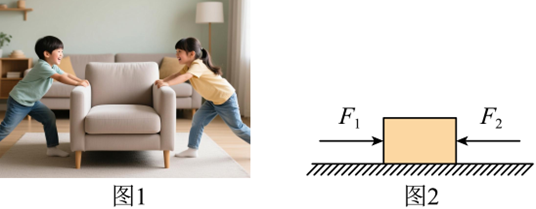 2.两小孩对沙发施加水平推力,图2为简化图。已知沙发的质量为m=40kg,沙发与地面间的动摩擦因数为μ=0.2,重力加速度g取10m/s2,设最大静摩擦力等于滑动摩擦力。